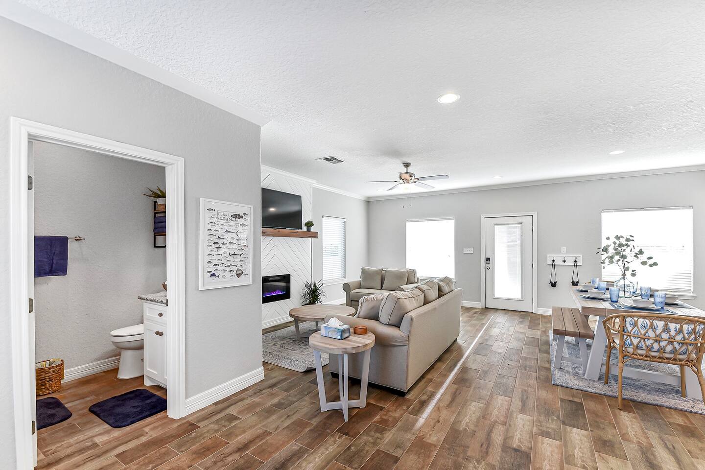 Maximum of 9 guests AT ALL TIMES, regardless of age/size/event/gathering...etc Welcome to SEAesta Shack, a 3 Bedroom/2 Bath Colorado River Front getaway is packed full of EVERYTHING your family will need to make a lasting memory. Spend your days either at the beach, fishing, crabbing, kayaking, bird watching, dolphin watching or just taking in the stunning South Texas Sunset on any one of the 3 porches. Or, spend your night fishing on the private pier with our bright fishing light.