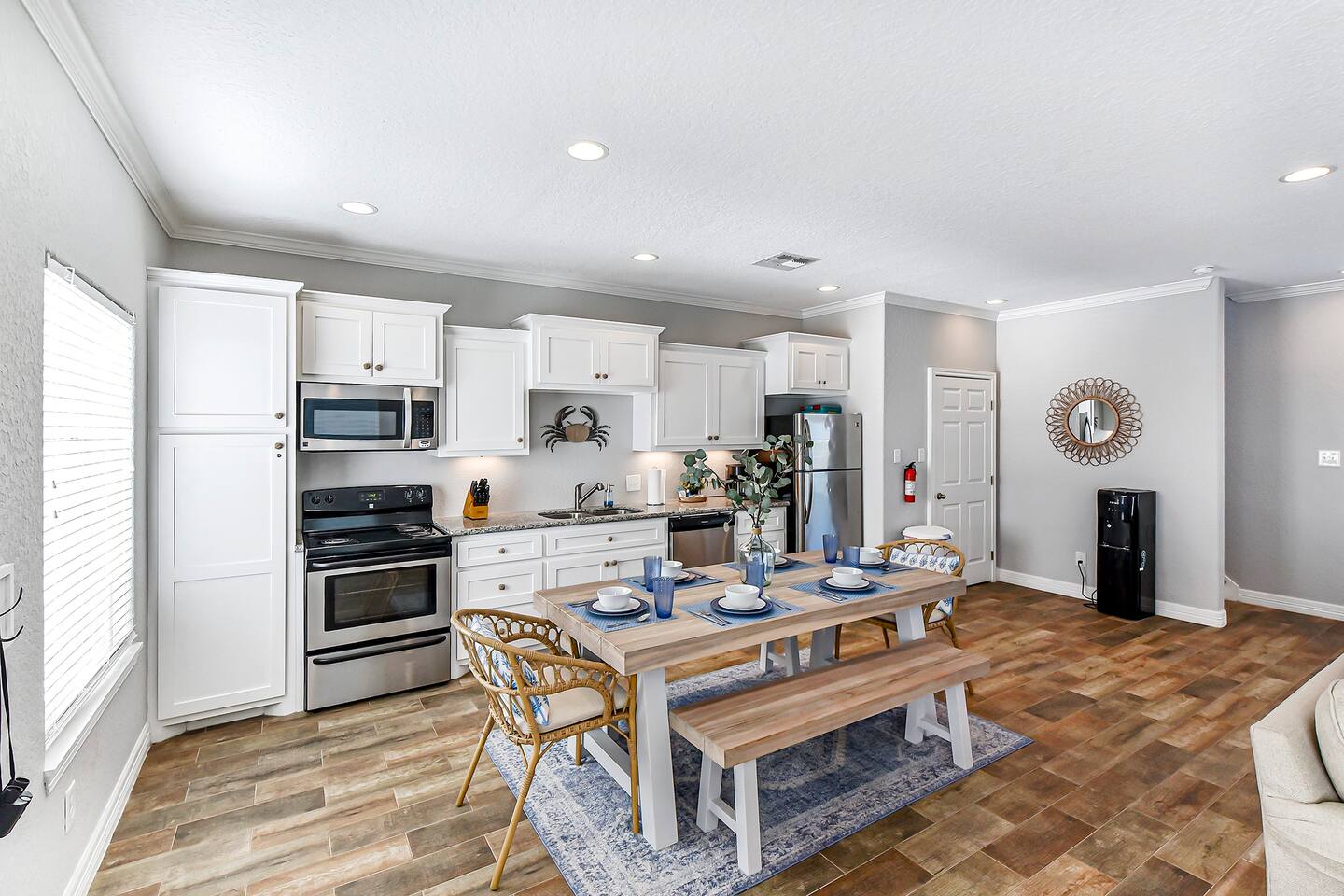 ☀️The SEAesta Shack☀️ Location, Location, Location ✅Located on the Colorado River ✅Sunset Views ✅Short drive to Matagorda Beach ✅Private Fishing Pier with Fish cleaning station ✅Fishing lights for night fishing Sleeping Arrangements--Sleeps 9 Comfortably 🛏️Bedroom #1 - Queen Bed 🛏️Bedroom #2 - Queen Bed 🛏️Bedroom #3 - Two Twin-over-Twin Bunk Beds + Twin Rollaway Bed Bathrooms 🚿2 Full Bathrooms 1 located on main level, 1 located on top level Kitchen Spaces ⏲️ Full Kitchen: Includes full size refrigerator/freezer (no ice maker), microwave, electric oven/stovetop, sink, dishwasher Outdoor Living ✅2 decks for lounging 🔥Smokeless Fire Pit 🍗Grilling Options: charcoal grills (bring your own charcoal)